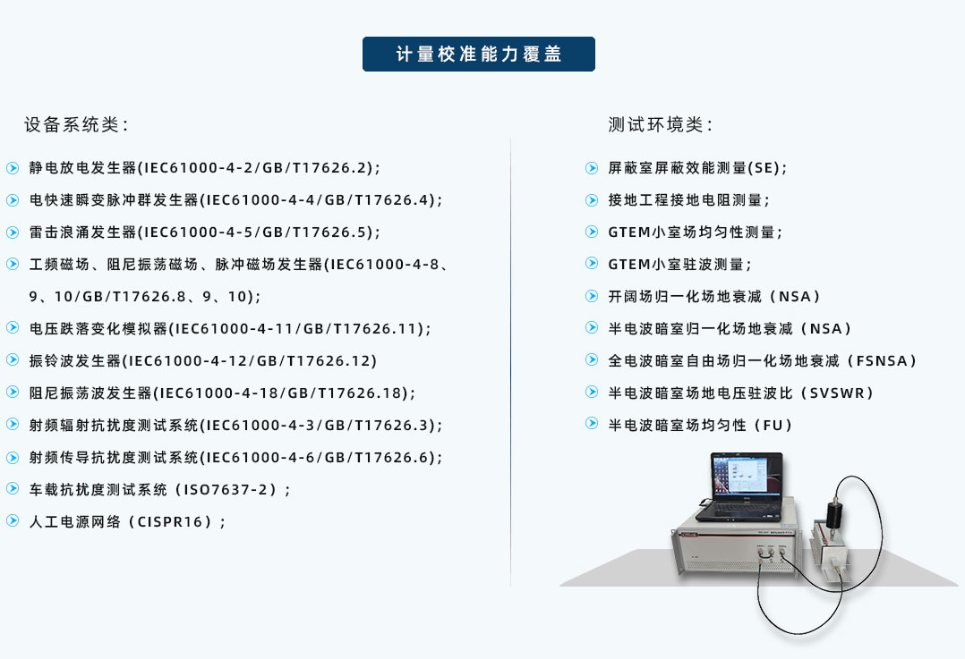 作為專(zhuān)業(yè)的電磁兼容測(cè)試解決方案供應(yīng)商,上海凌世電磁技術(shù)有限公司按照國(guó)際標(biāo)準(zhǔn)擁有國(guó)內(nèi)完整的電磁兼容測(cè)試設(shè)備及測(cè)試環(huán)境計(jì)量校準(zhǔn)能力。